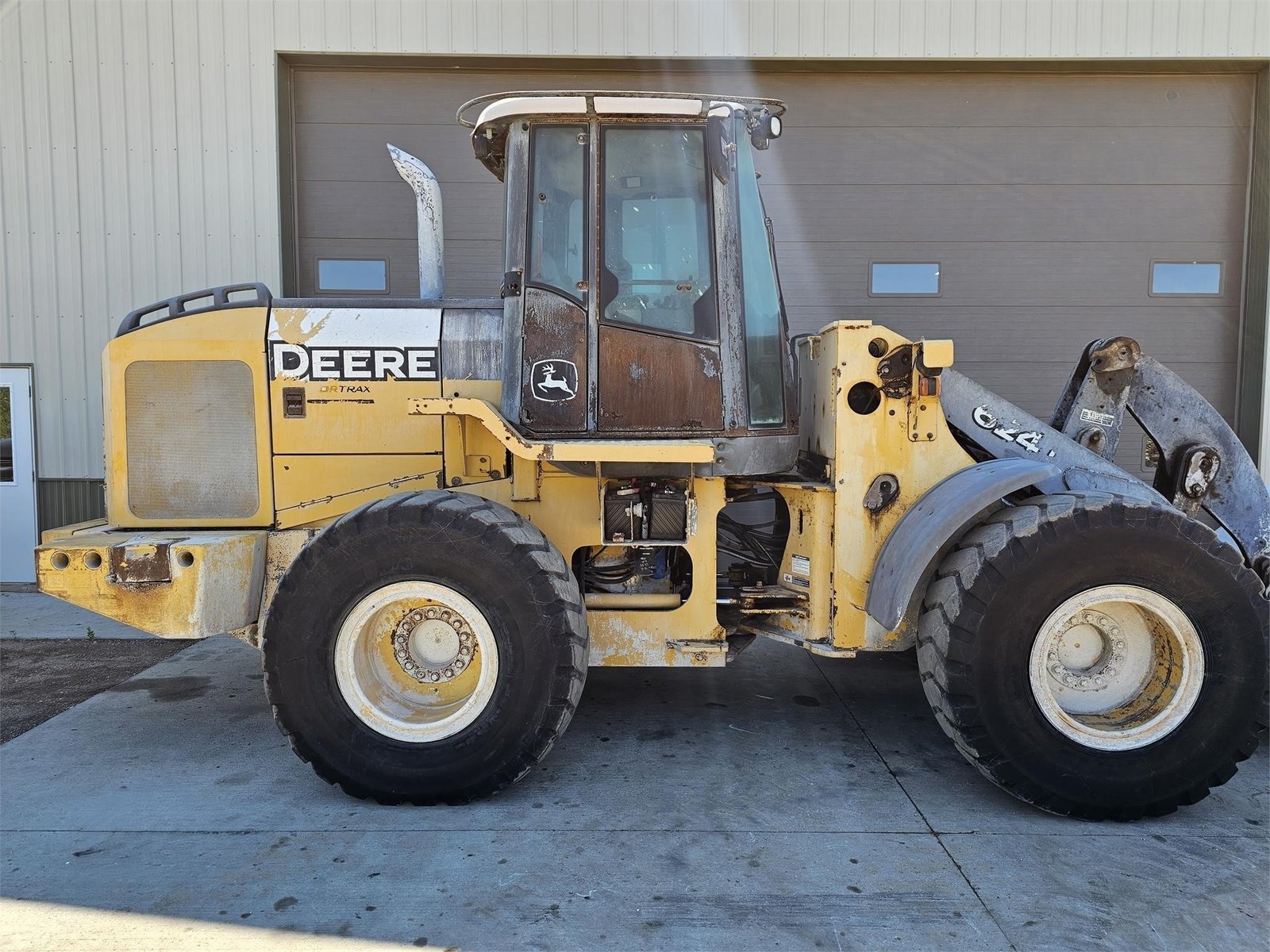 2007 JOHN DEERE 624J Wheel Loader Enclosed Cab, A/C, Heat, Quick Coupler, Aux HYD, Auto Lube, 20.5-25 Tires, 5107HRS Cab is rusty but the machine runs and operates well with no codes or warning lights new batteries no mechanical issues that we noticed.